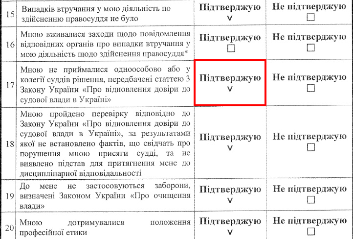В своей декларации доброчеснсоти за 2016 год Журавская указала о том, что ею не принимались решения о привлечении к ответственности лиц, которые были участниками массовых акций протеста.