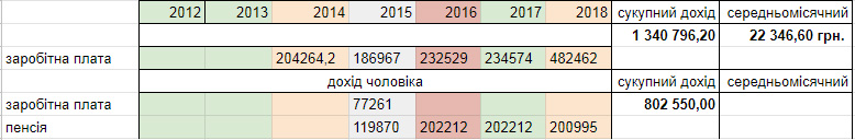 Мы посчитали совокупный доход Елены Журавской и ее мужа за 2014, 2015, 2016, 2017 и 2018 годы. В течение указанного периода судья декларировала исключительно судейскую зарплату. За пять лет государство ей выплатило 1,34 млн грн вознаграждения.