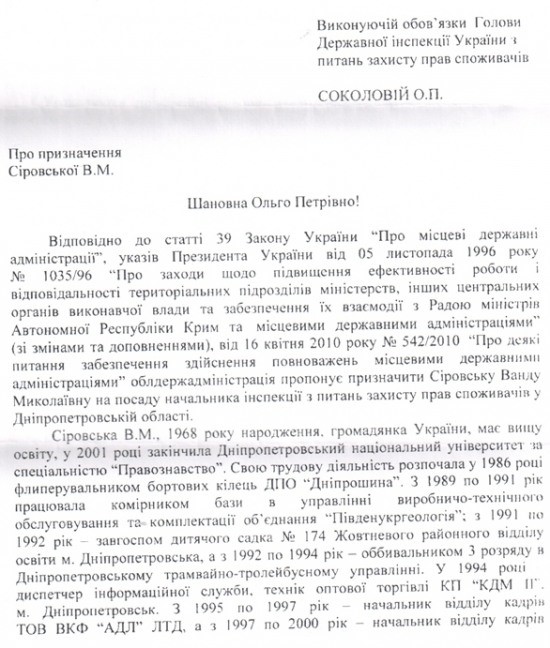 Ванда Сировская – интересная личность. Флиперовщик бортовых колец на «Днепрошине», кладовщик и обивщик 3 разряда смогла добиться того, что на должность начальника Инспекции по вопросам защиты прав потребителей в Днепропетровской области ее рекомендовал в 2014 году в то время губернатор Игорь Коломойский.