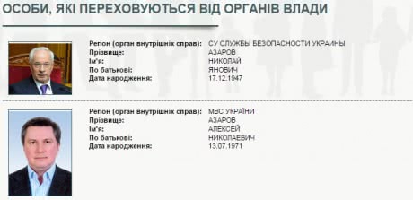 Екс-прем’єр Микола Азарова був оголошений МВС у міждержавний розшук у липні 2014 року, дані про його розшук також містяться на сайті МВС.