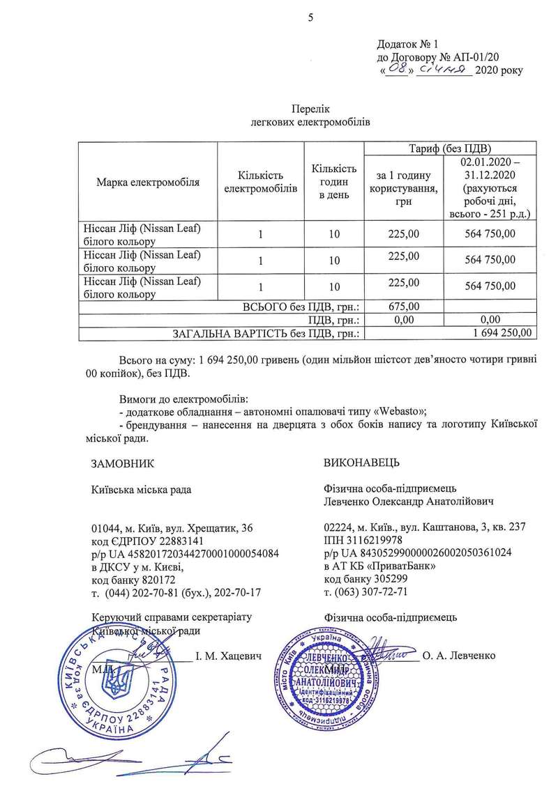 Исполнителем данного договора является некий физическое лицо –предприниматель Александр Левченко, который занимается пассажирским наземным транспортом и был зарегистрирован лишь в феврале 2019 года. Со стороны Киевского городского совета договор был подписан управляющим делами Игорем Хацевичем.