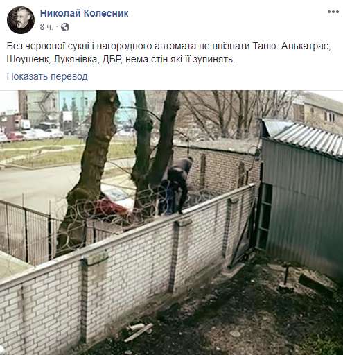 Очевидно, что Черновол очень хотелось пообщаться с Бабиковым, так как ей пришлось преодолеть двухметровый забор с колючей проволокой.