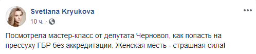 Журналист Светлана Крюкова считает, что Черновол мстит ГБР.