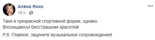 Журналист Алена Яхно восхищается физической формой Черновол.