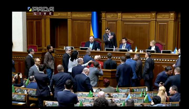 Парламентарии требовали предоставить им время для вопросов к премьеру. Группа политиков из разных фракций подбежала к президиуму ВР, выражая свое недовольство.