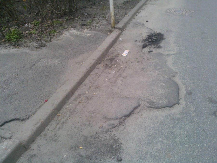 А от далі в кінці Артилерійського та в декілької місцях посередині чітко видно, що працівники «Київавтодора» беззалаберно поставилися до виконання своїх обов’язків.