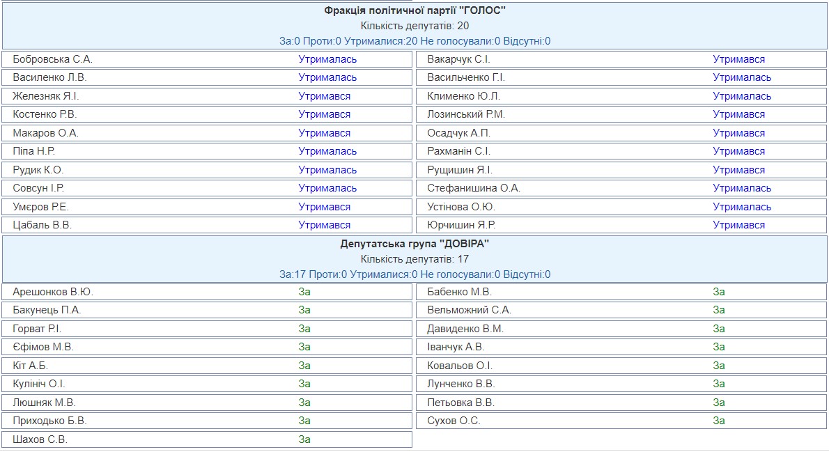 В то же время почти все парламентарии от фракции «Европейская солидарность» удержались от голосования, лишь двое отсутствовали на заседании Рады.