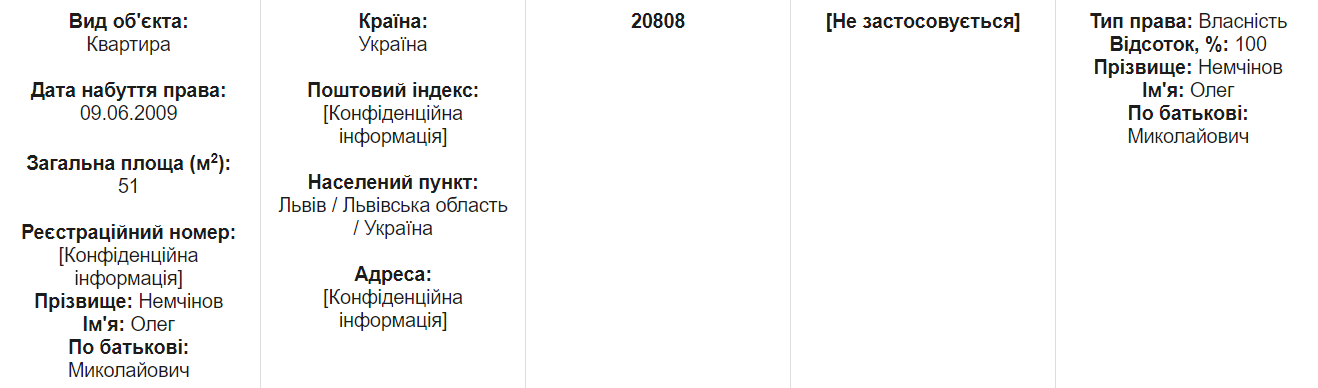 11 січня цього року Олег Немчінов придбав квартиру у Києві за понад мільйон гривень.