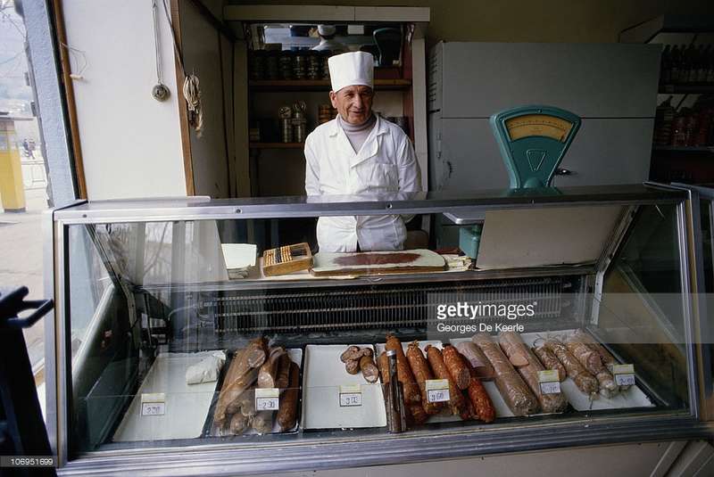 А вот так выглядел колбасный отдел. Фото сделано в 1987 году, и это еще довольно приличный ассортимент той эпохи, практически образцово-показательный. Балыки, карбонаты, ветчина? Забудьте, таких частей тела не существовало у советских коров всё это ехало в "спецмагазины" для советской номенклатуры, простому народу предлагали довольствоваться всякими там "докторскими", о полезности которых слагали всевозможные мифы в советских кулинарных книгах. Кстати, обратите внимане на цены — даже такая плохонькая колбаса стоила немалых денег, вижу вон на ценнике 3 руб. 60 коп. (при средней зарплате в 120-160 рублей).
