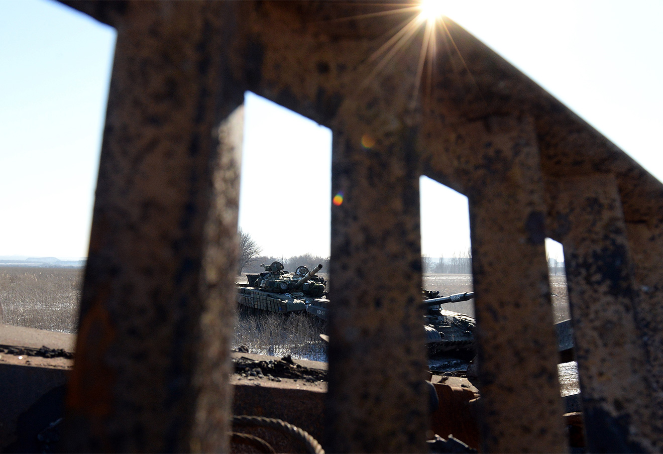 На фото вверху: Тележурналисты недалеко от Дебальцево. Фото: Сергей Супинский / AFP