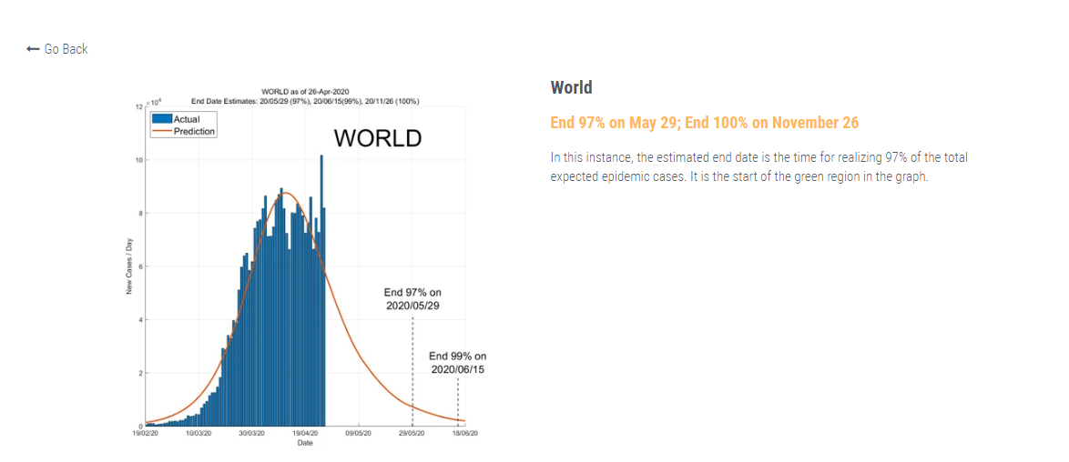 Что касается мира, то в целом конец пандеми, согласно прогнозам, ожидается 26 ноября 2020 года. Однако с 97% случаев человечество якобы должно справиться до 29 мая.