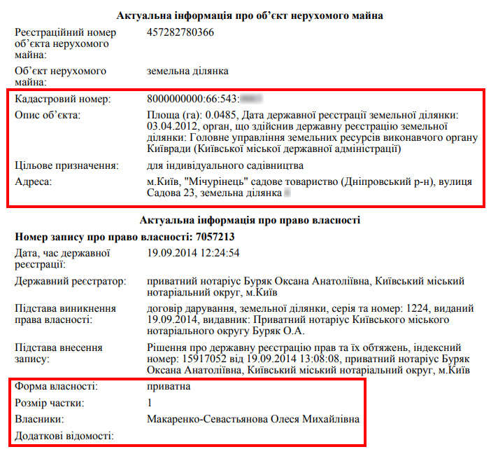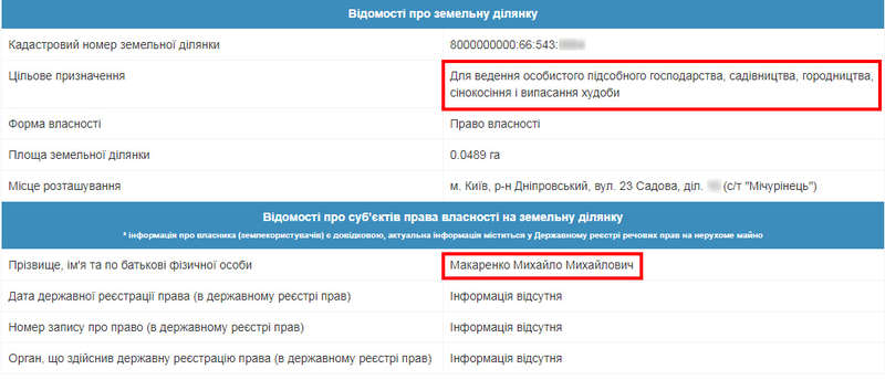 Ділянка зліва належить Олесі Михайлівні, ділянка справа – батьку Михайлу Макаренку. До того ж суддівська родина навіть не змінювала призначення землі, де будувала будинок. До прикладу, дочка звела будинок в саду, а батько – на сінокосі чи підсобному господарстві.