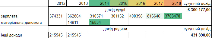 Упродовж двох років Берднік отримувала матеріальну допомогу та зарплату. Інших виплат у неї не було взагалі. У 2018-му, коли запрацював Верховний Суд, її зарплата суттєво виросла до 3,7 млн грн. Колишній чоловік же, судячи з усього, отримував лише пенсію.