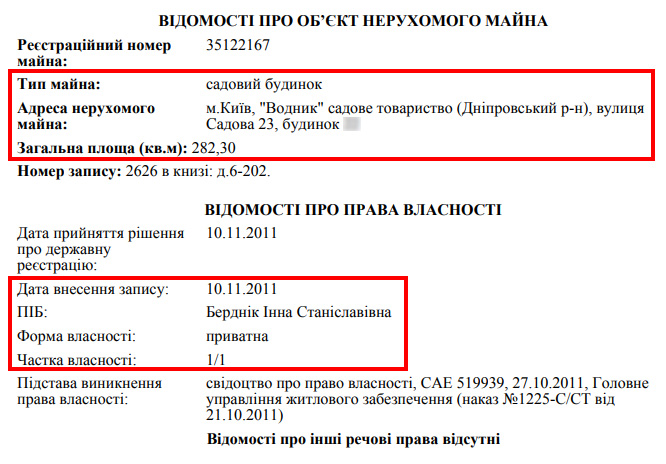 До маєтку додається ділянка на шість соток, отримана ще у 2009 році. Нині ця земля одноосібно належить судді Берднік.