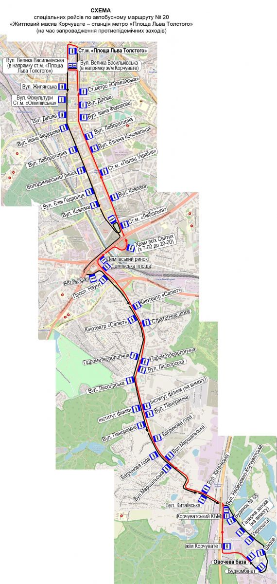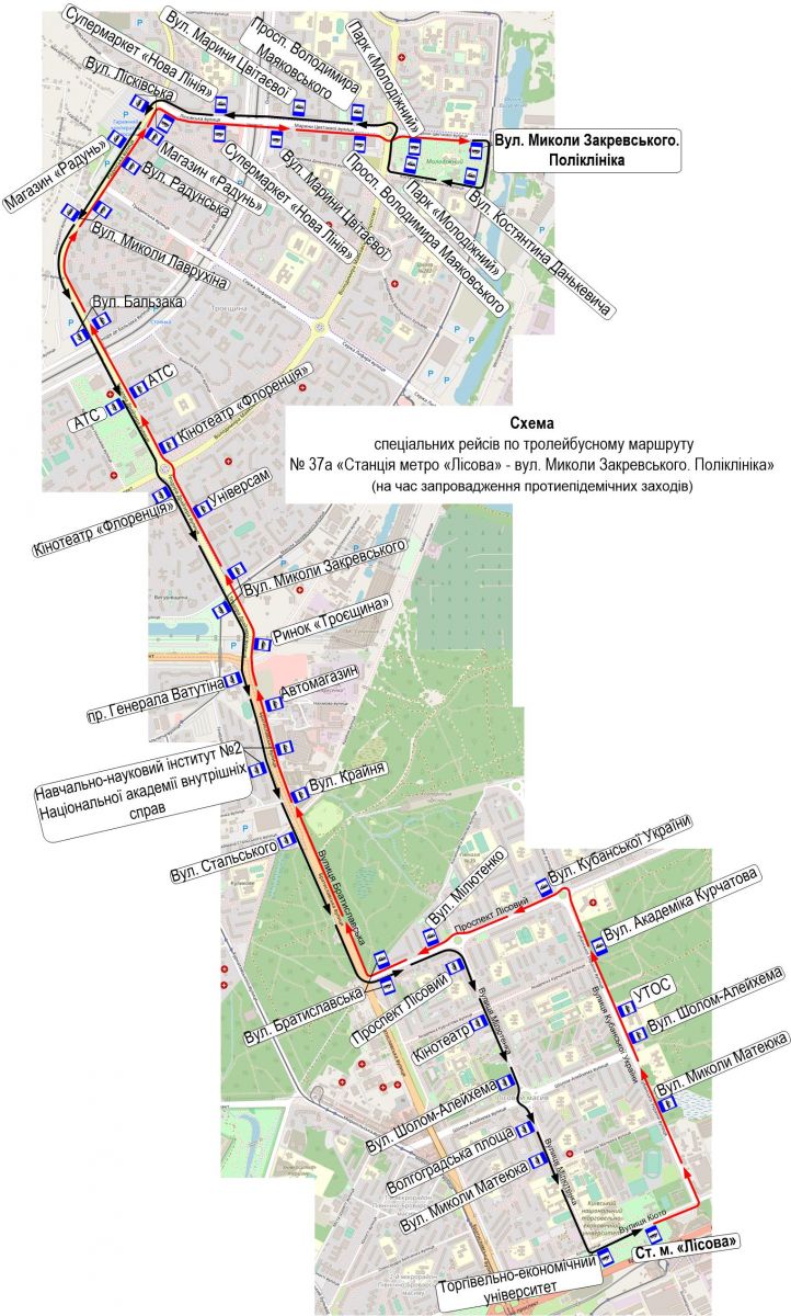 Так, в режиме спецрейсов будет курсировать автобусный маршрут № 20 «Жилой массив Корчеватое — станция метро «Площадь Льва Толстого», автобусный маршрут № 33-Т «ДВРЗ — станция метро «Черниговская» и троллейбусный маршрут № 37-А «Станция метро «Лесная» — ул. Николая Закревского. Поликлиника».