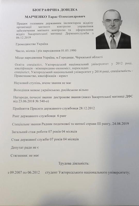 Тарас Марченко, которого планируют назначить руководителем таможни - простой инспектор, за зарплату в 20к $ будет выполнять все, что скажут контрабандист Фирманюк и Макаренко.