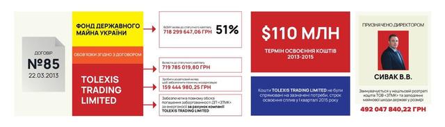 На «Запорожский титано-магниевый комбинат» Владимир Сивак пришел в 2010 году. Часто в интервью он вспоминает те годы, мол, предприятие на тот момент находилось фактически в безнадежном состоянии. Долги и кредитные обязательства гособъекта не давали ему развиваться. В январе 2012-го Кабмин принимает решение о реструктуризации предприятия, путем частно-государственного партнерства. Собственно, в 2013-м так и случилось. Договором №85 было создано ООО «Запорожский титано-магниевый комбинат», 51% акций в котором принадлежал Фонду государственного имущества Украины, а еще 49% – кипрской компании Tolexis Trading Limited, которая связана с Дмитрием Фирташем.