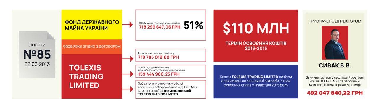 Вместе с тем, согласно пункту 7.3 договора №85 компания Tolexis Trading Limited взяла на себя дополнительные обязательства – погашение в полном объеме задолженности госпредприятия «ЗТМК» за энергоносители. На это инвестору согласно договору было отведено три месяца со дня создания ООО «ЗТМК».