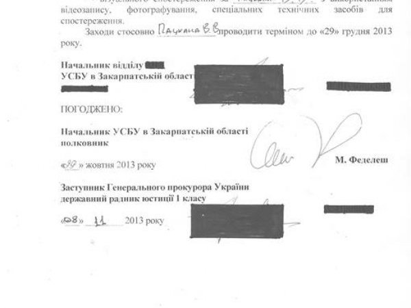 Підписував клопотання особисто начальник УСБУ в Закарпатській області М.Феделеш.