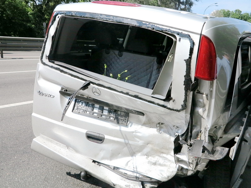 Возвращавшийся в Киев водитель «Мерседеса» рассказал, что перед КП была тянучка. Неожиданно медленно ехавший микроавтобус сотряс сильный удар. Авто отлетело вперед, зацепило по касательной «Ладу» и остановилось примерно в полусотне метров от места столкновения.