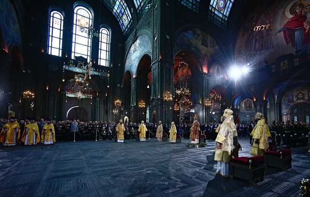 Перед цим в головний храм ЗС РФ доставили ікони покровителів російських військ.