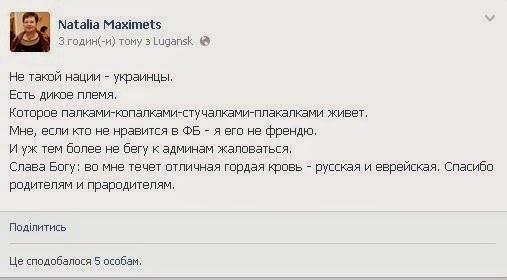Одіозна Наталія Максимець, депутат Луганської міськради від КПУ та головред газети Луганського обкому КПУ "Радянська Луганщина", - зараз працює ведучою на радіо "Луганськ 24". Виступає із заявами про те, "що немає такої нації, як українці", а "є дике плем’я", відкрито глумиться над жертвами Голодомору, закликаючи на День пам’яті організувати пікнік, закликає "ловити і здавати укропських шпигунів".