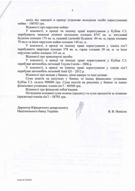 Это сведения о доходах Кубива за период с 24 февраля по 19 июня 2014 года, когда он возглавлял НБУ. Они предоставлены во исполнение судебных решений.