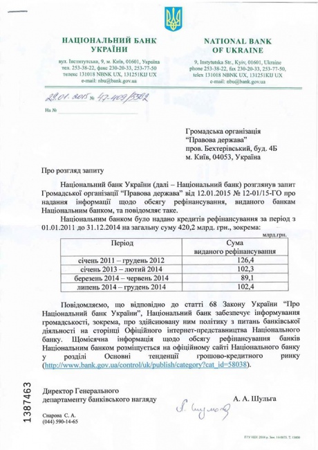 Об этом говорится в ответе Нацбанка адвокату, одному из кандидатов в члены Высшего совета юстиции Ростиславу Кравцу, который он обнародовал в Facebook, пишет УП.