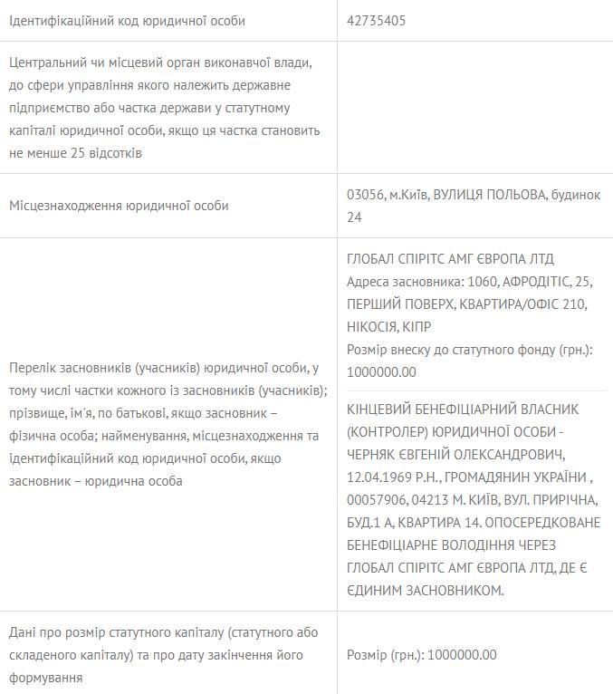 — ООО «Глобал Спірітс Груп», конечным бенефициарным собственником которого является Черняк и другие.