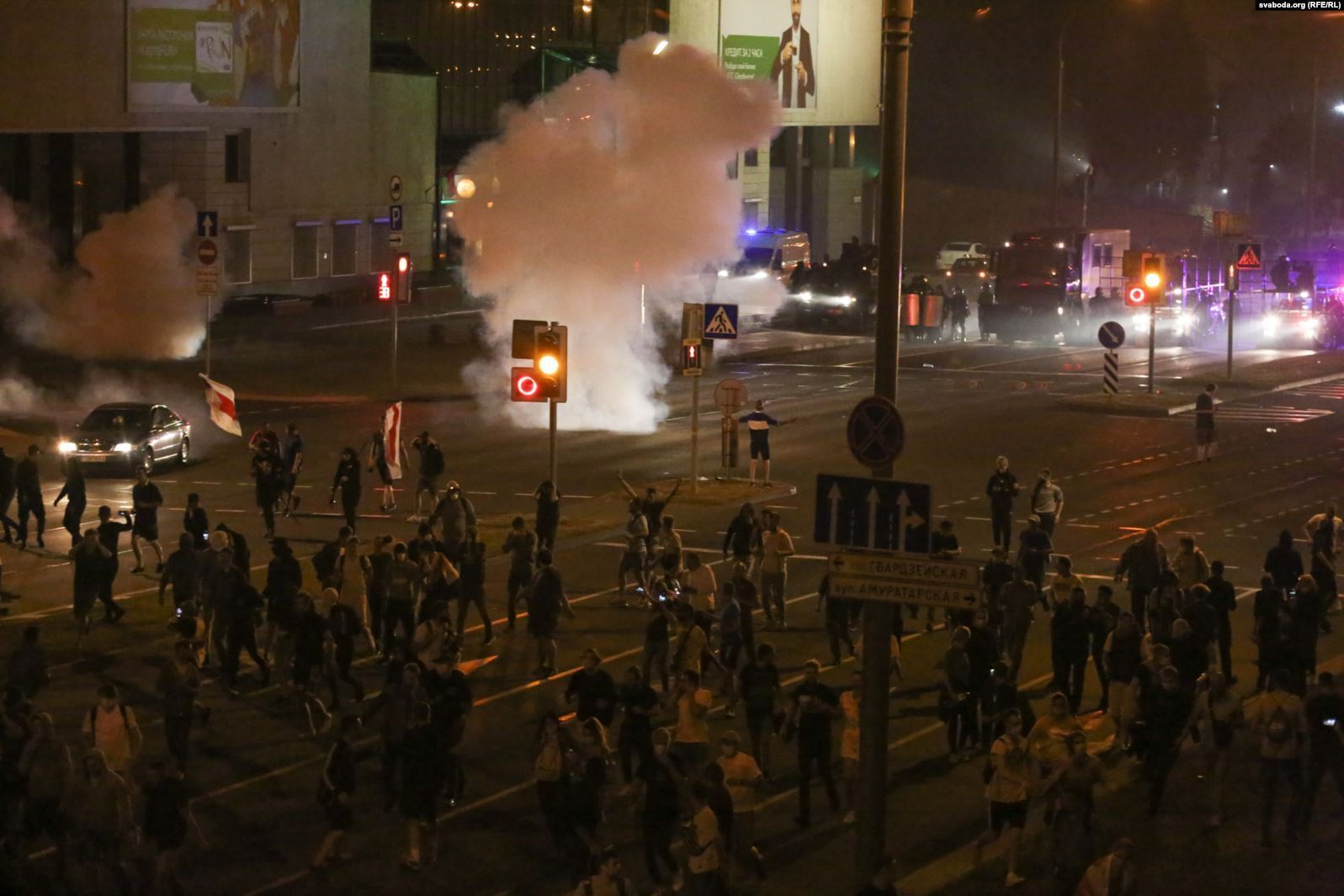 Массовые протесты в Беларуси после объявления первых результатов экзит-полов президентских выборов, по результатом которых лидирует действующий глава страны Александр Лукашенко продолжались в Минске до трех ночи.