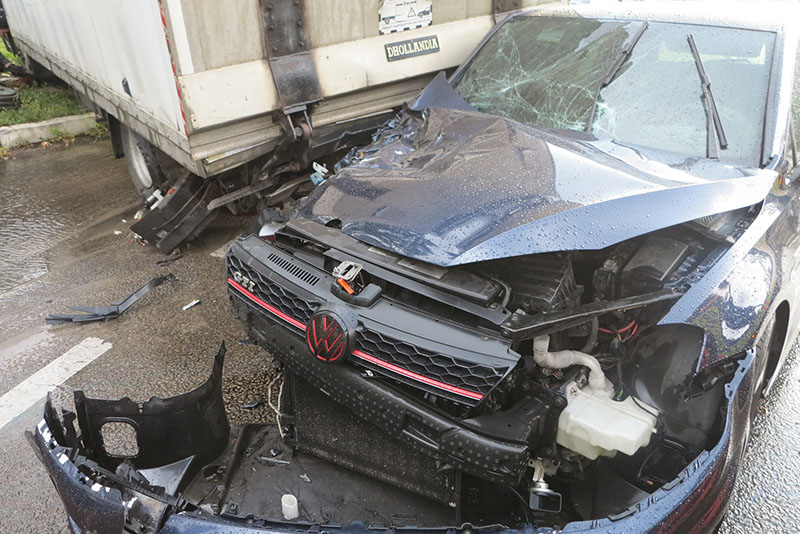 По словам водителя МАN, водитель фургона начал брать правее к обочине, а едущий за ним Golf попытался проскочить. Дорога же после дождя была скользкой…