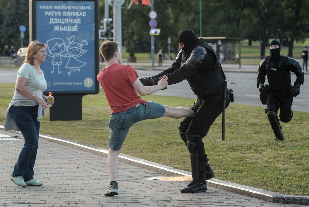 Мы сравниваем события в Минске с Киевом в 2014 году и приходим к выводу, что «даже» белорусы так устали терпеть Лукашенко, что с прошлых массовых протестов в 2010 году сильно продвинулись вперед. Хотя в Минске до стадии столкновений с силовиками дело пошло на порядок быстрее, чем в Киеве, здесь протест пока не перешел в круглосуточную фазу, отмечают мои собеседники.