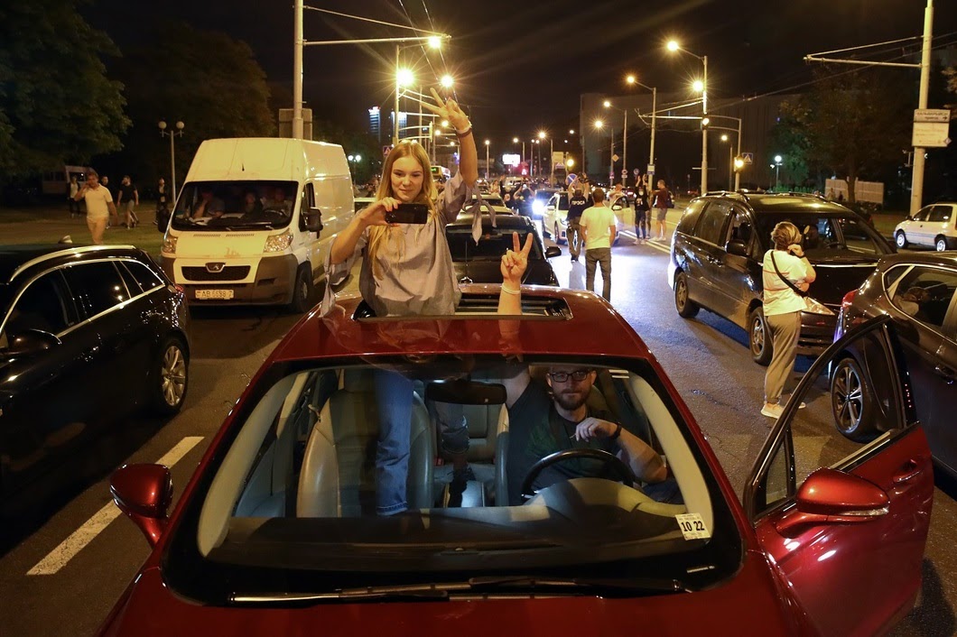 — Люди, что же вы стоите всееее! 84 процента! (имеется в виду результат Лукашенко на выборах, в который вряд ли кто в Беларуси верит), — вдруг надрывно кричит парень в розовой майке всем, кто нерешительно мнется на почтительном расстоянии от передовой группы протестующих. Парню никто не отвечает, многие прячут глаза, но здесь, на проспекте Победителей, сегодня буйных нет.