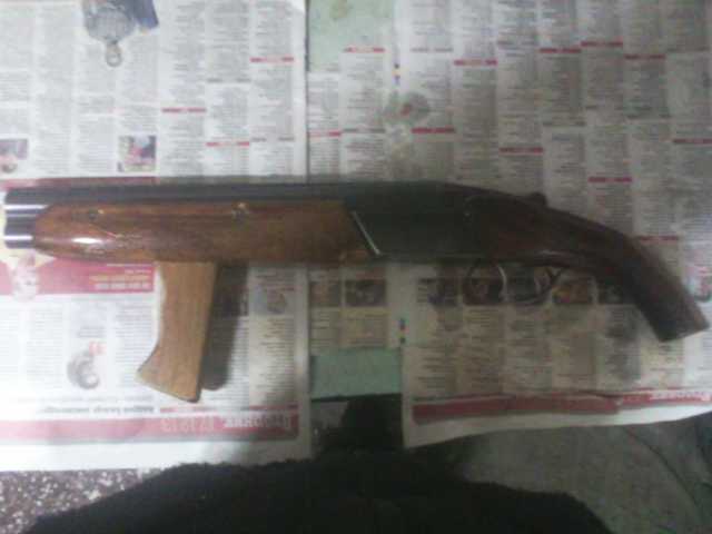 Это обрез обычного охотничьего ружья 12 калибра. Так же как и ружья милиции, выстрелы из такого гладкоствольного оружия не идентифицируются.