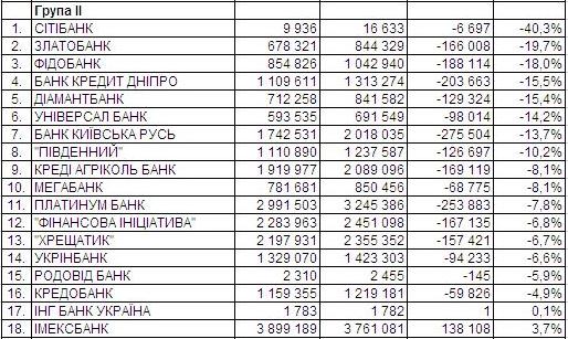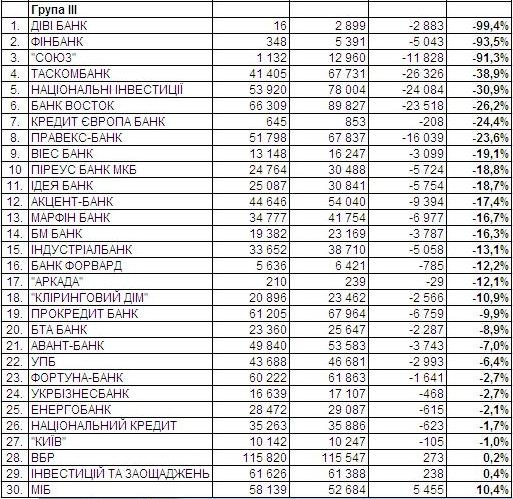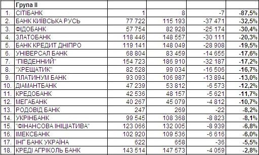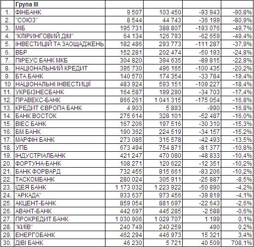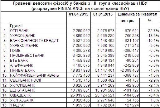Щодо гривневих вкладів населення, то в І кварталі серед банків з І групи в абсолютному вимірі відповідний портфель найвідчутніше зменшився в Приватбанку, Укрсоцбанку/Unicredit Bank та Укрексімбанку. У відносному ж вимірі – в ОТП Банку, Укрсоцбанку й банку «Фінанси та кредит».