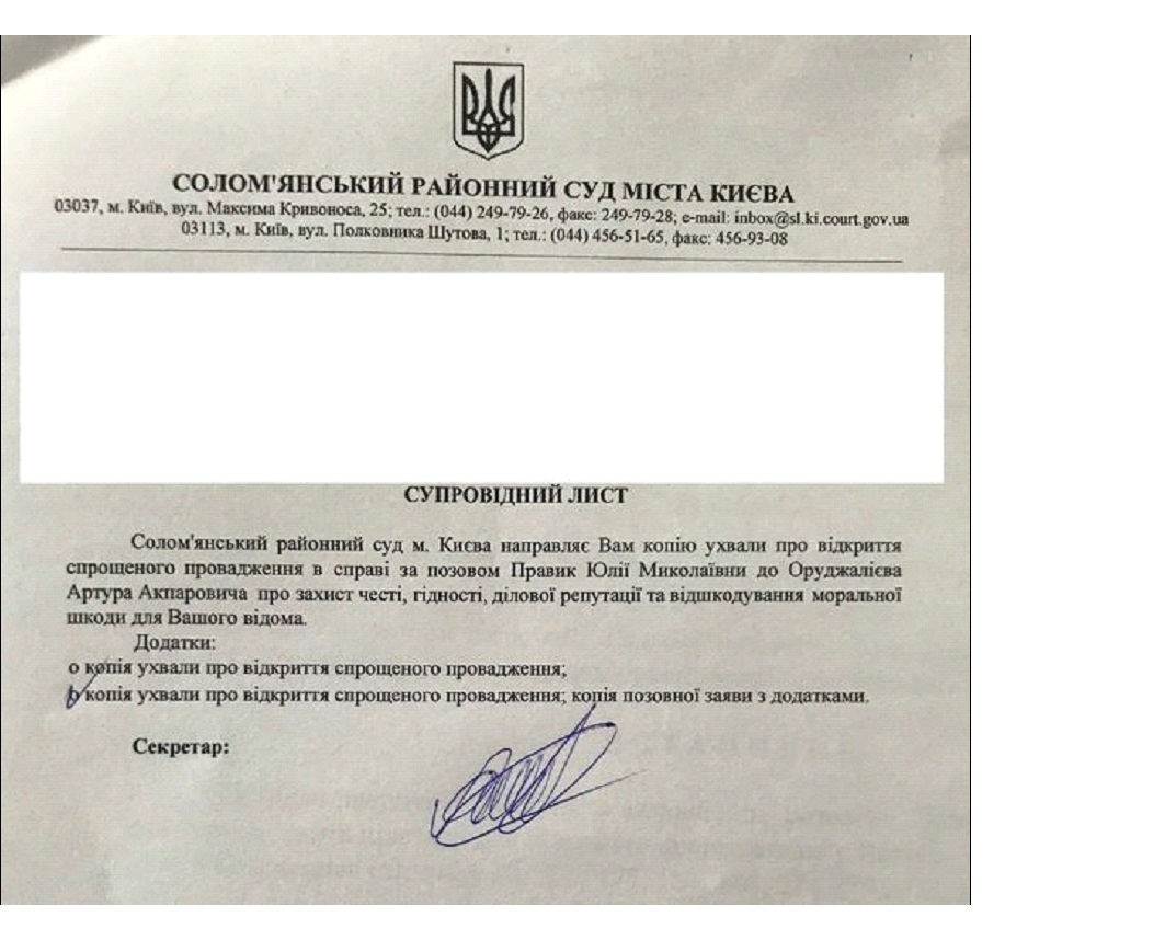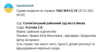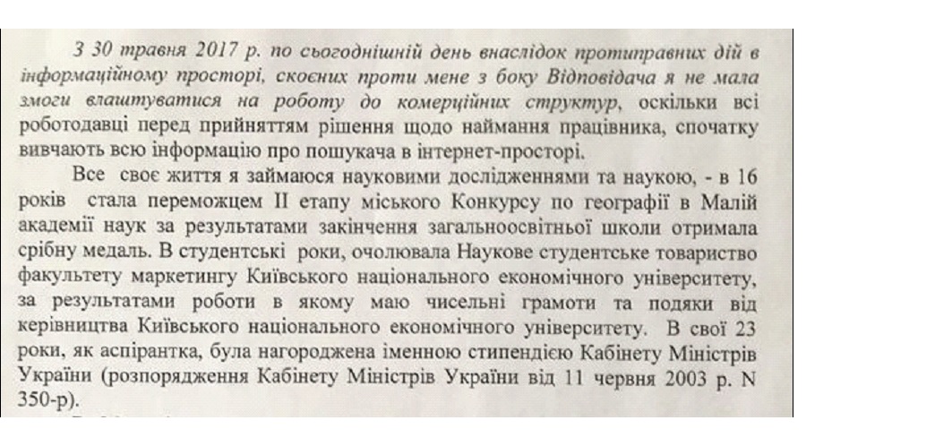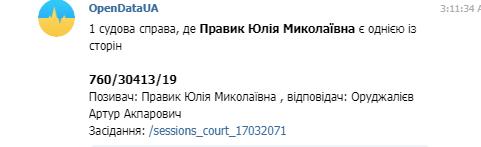 Итак, OpenData выдает нам только лишь один факт из жизни нашей героини, а именно как раз тот резонансный случай, когда она подала в суд на экс-владелеца информационного ресурса AIN.UA Оруджалиева Артура и потребовала от него 2 ляма. Скромная дама, требующая справедливости и защиты ее чести и достоинства, ничего не скажешь. К тому же она навалила там таких обвинений. Что уши вянут.