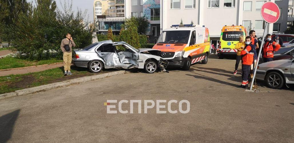 Після зіткнення BMW відлетів у припаркований автомобіль швидкої допомоги, а Suzuki загорівся. Обох водіїв госпіталізували.