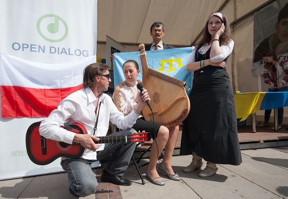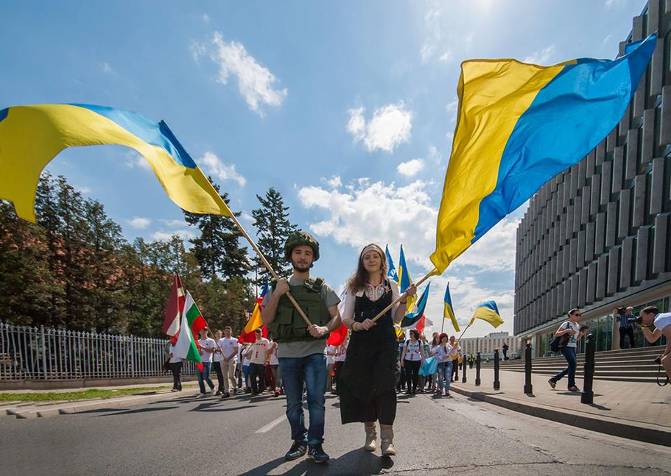 Українці були одягнуті у яскраві вишиванки, мали при собі національну символіку, українські та кримськотатарські прапори.