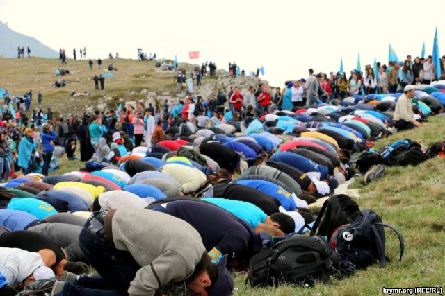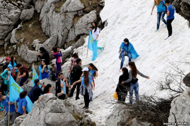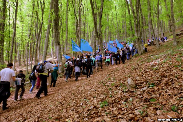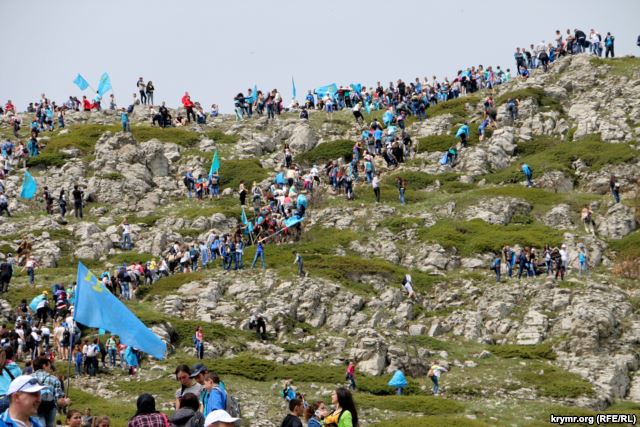 В шестом по счету восхождении на одну из самых высоких гор Крыма Чатыр-Даг (1527 метров над уровнем моря) в рамках мероприятий, приуроченных к годовщине депортации крымскотатарского народа, приняли участие около 4 тысяч человек, заявляют его организаторы. На вершине крымской горы собравшиеся почтили память жертв депортации традиционной молитвой.