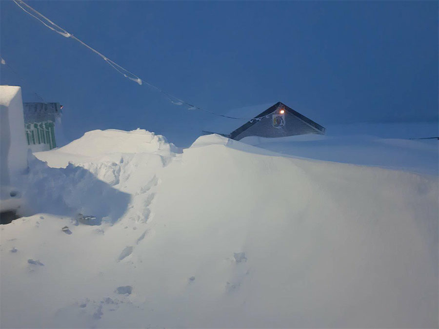 «Высота снежного покрова составляет 169 — 170 см, что является рекордом для этого года зимовки. Теперь нашим полярникам прибавилось работы, как откопать путь наружу», — комментируют снимки ученые.