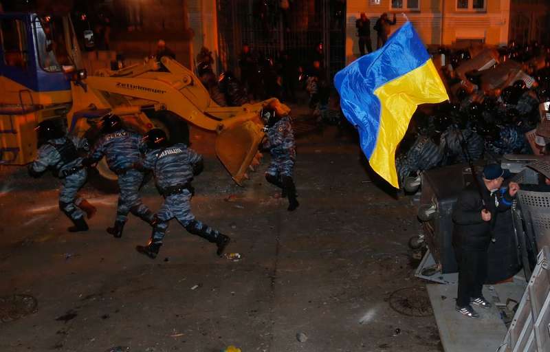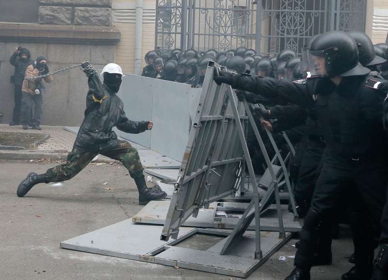 Столкновения протестующих с полицией у президентского офиса в Киеве, 1 декабря 2013 года. Фото: AP / Efrem Lukatsky
