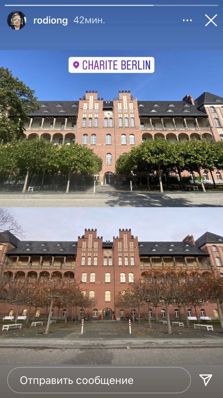 Сегодня днем младший сын Кернеса, Родион Гайсинский, опубликовал в Instagram фото клиники Шарите.