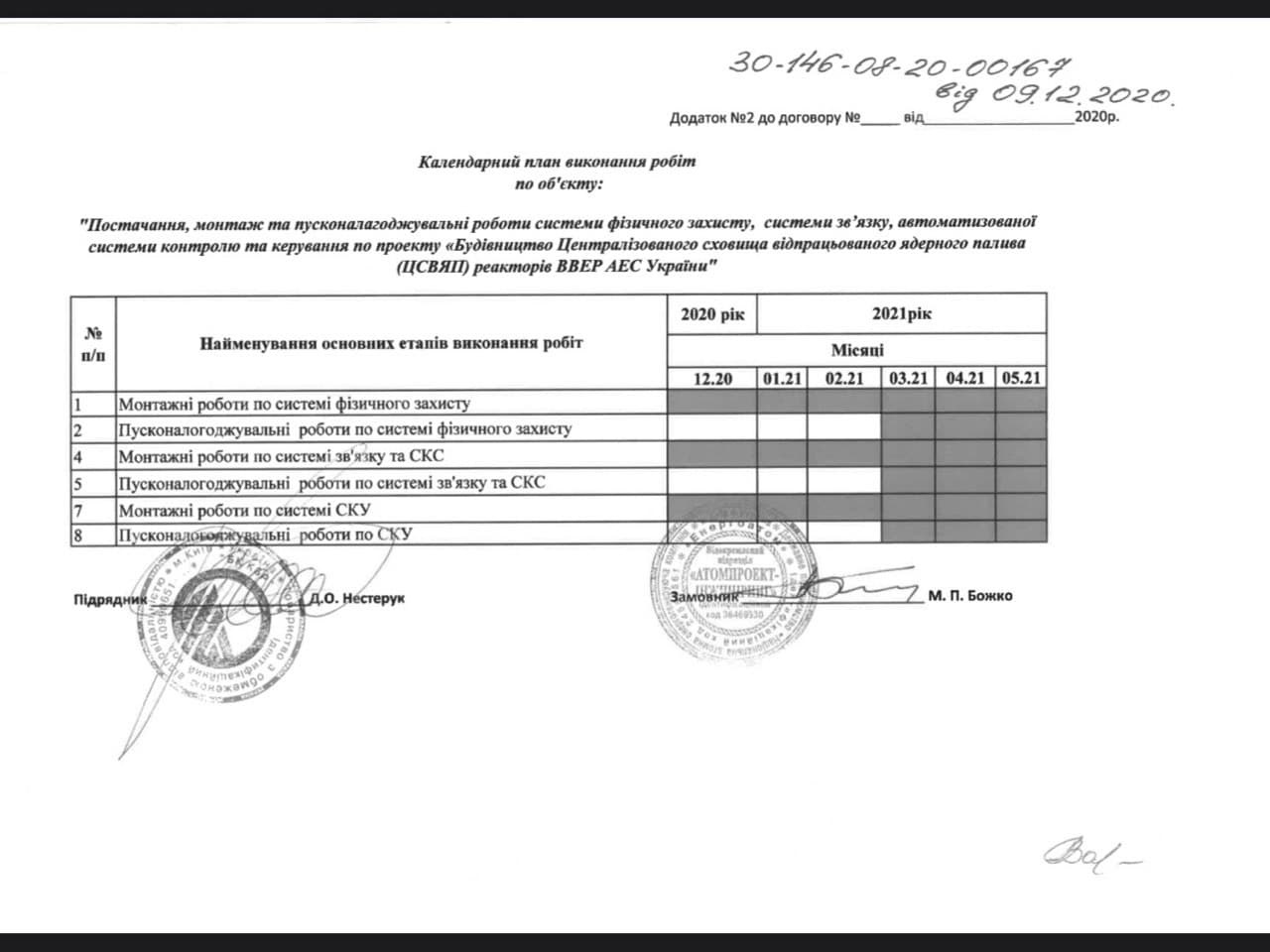Очевидно, що тендерний комітет за жодних обставин не міг би допустити підписання такої угоди. Очевидно, що узгоджені вони всупереч процедурам під «свою» компанію. Крім того, подив викликає і графік робіт, визначений у додатку, що є невід’ємною частиною договору з підрядником. У ньому чітко видно, що більша частина робіт припадає на 2021 рік.