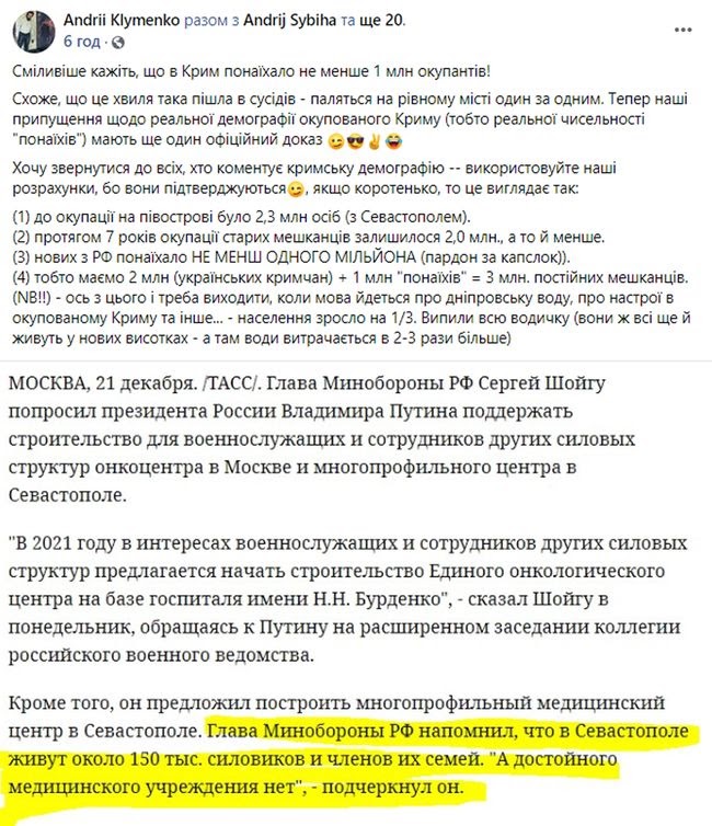 У нас существует поверхностный взгляд на эти вопросы, когда говорят, что отсутствие воды не позволяет оккупантам разворачивать военную базу так, как они этого хотели, или не позволяет работать на полную мощность предприятиям. Надо понимать, что в балансе потребления воды в Крыму даже развернутая большая военная база с семьями военных является не слишком чувствительной. Главное, что сдерживает перекрытие Северокрымского канала - это колонизация Крыма. Потому что у Путина были большие планы с точки зрения переселения в Крым 2 млн. граждан РФ из российской глубинки. Но из-за отсутствия воды сегодня у него очень ограниченные возможности. Они и так перевезли по разным оценкам от 300 до 500 000 российских граждан, которые незаконно приехали в украинский Крым на ПМЖ. И для этого количества людей уже не хватает воды. Что все больше будет порождать негативную реакцию жителей полуострова.