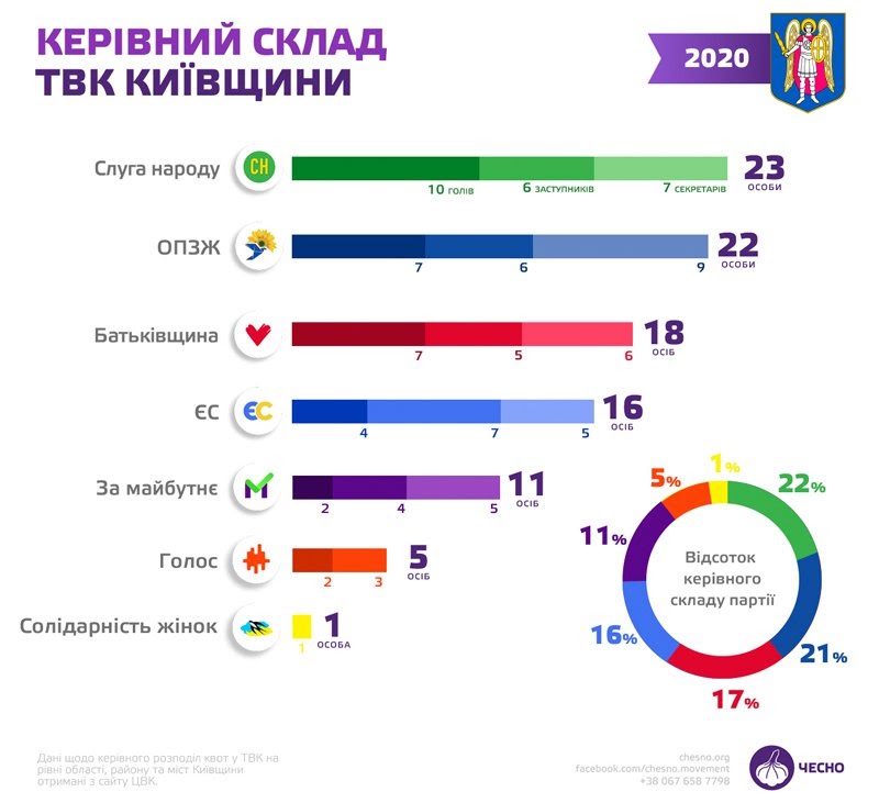 Но и при распределении руководящего состава в ТИК районов и городов были свои нюансы. По сути, в Киевской области среди парламентских партий в основном пострадал "Голос" и на несколько процентов ЕС. А непропорционально много квот получила ОПЗЖ. Примечательно, что Киевскую область в ЦИК курирует представитель ОПЗЖ Сергей Дубовик.