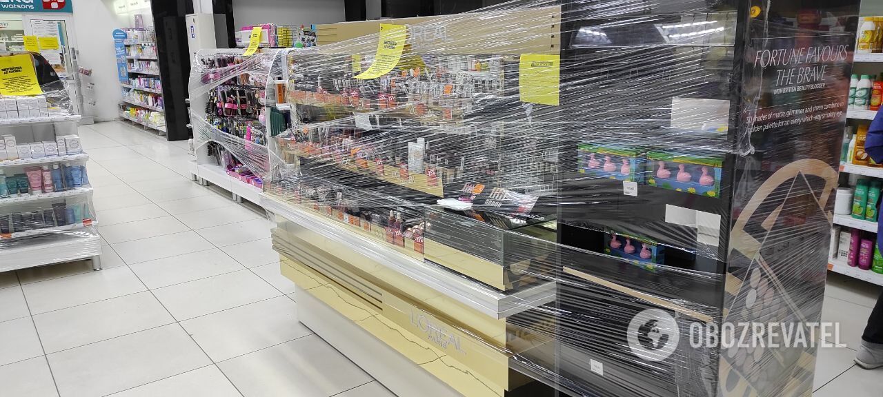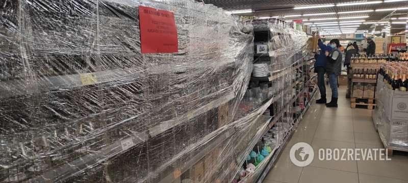 Например, в небольшом ТРЦ в столичном микрорайоне "Троещина" есть закрыты магазины. В супермаркете сотрудники пленкой закрыли товары, которые попали под запрет продажи.