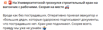 В среду, 13 декабря, в Харькове строительный кран упал на вагончик строителей.