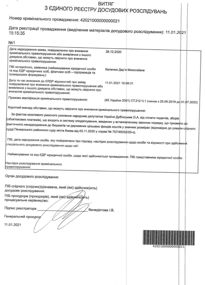 Теги: Неуплата налоговСлуга НародаОфис ГенпрокурораДубинский АлександрУголовное дело