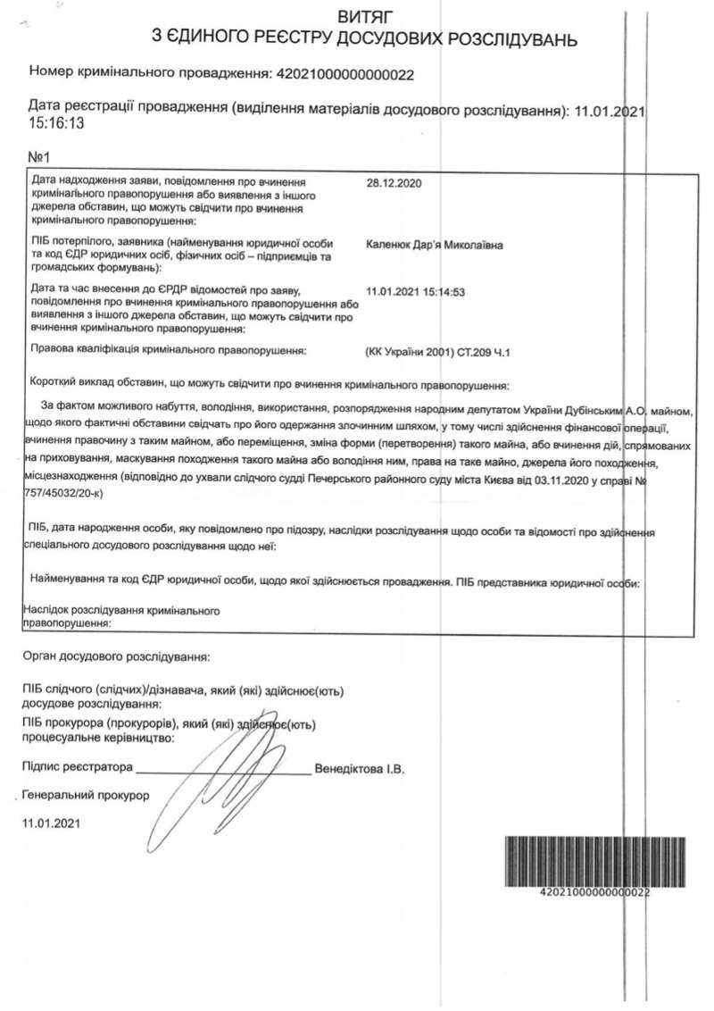 Офис Венедиктовой открыл против Дубинского еще два уголовных дела – документ