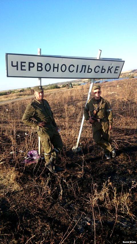 В сентябре я нашел фотографии двух простых российских танкистов, которые, видимо, от нечего делать просто начали фотографироваться на фоне знака на въезде в село Червоносильское – это тот самый иловайский котел. Вопрос: как российские солдаты попали под село Червоносильское?